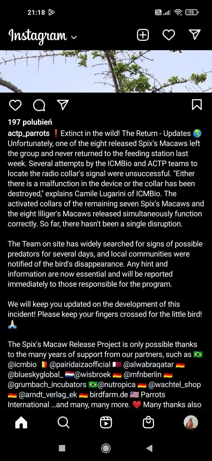 That is sad that the one macaw fell prey to a bird of prey. I figured birds of prey, or poachers would be the 2 main dangers to these spix macaws.Update on the lost macaw: