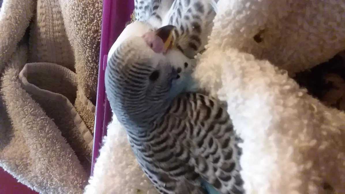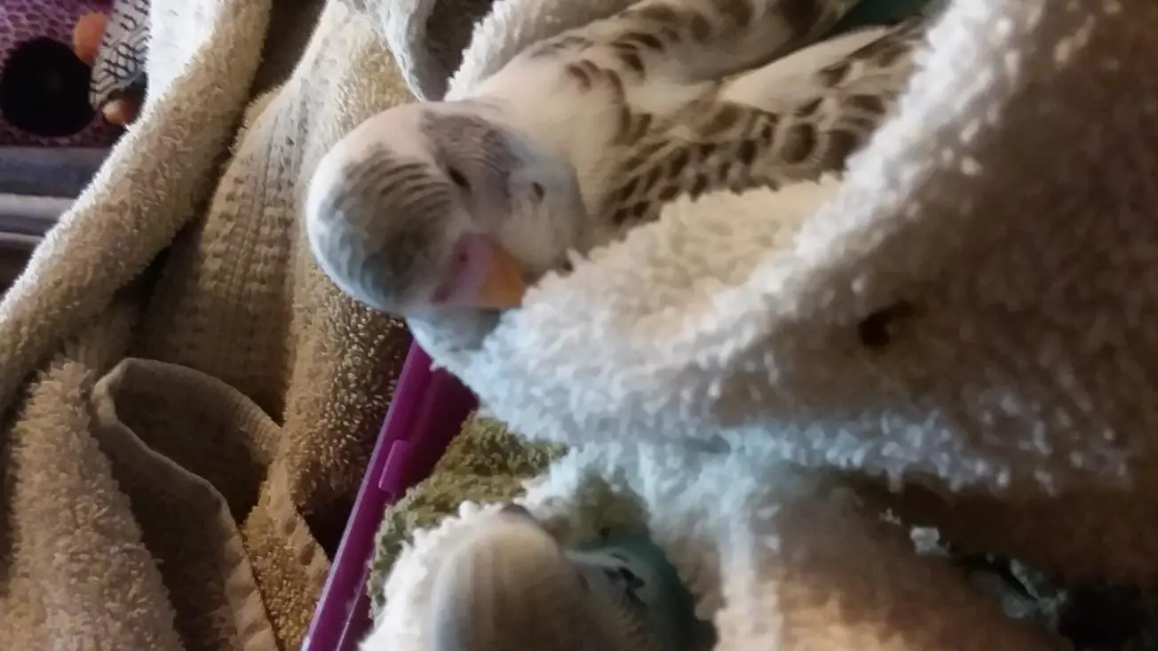 Initially, the vet used a waddle splint AND a surf board splint with a pool noodle and towel wrapped around each budgie to keep them standing upright. After 5 days of this, they were re-splinted and sent home in only their surf board splints and towels for another 10 days.