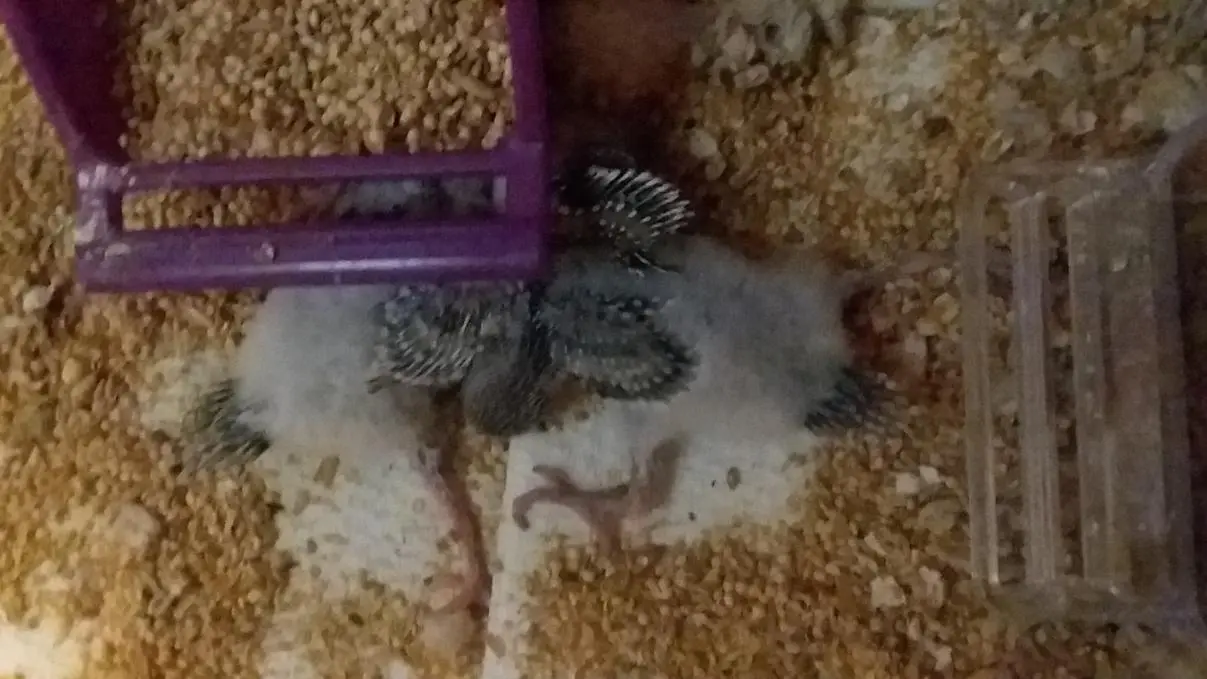 This particular bird was the worse of the 2 and had both legs splayed out to the side, he/she could not stand before being splinted. Now, he/she is able to stand upright AND waddle walk (getting there). He tends to tip forward and lose his balance when he's standing. But he is trying hard and learning, Opposed to lying on the floor with his one leg straight out to the side. This morning he was in his nest, either back from a night out or comfortably propped there from last night. I'm considerably happy for him.