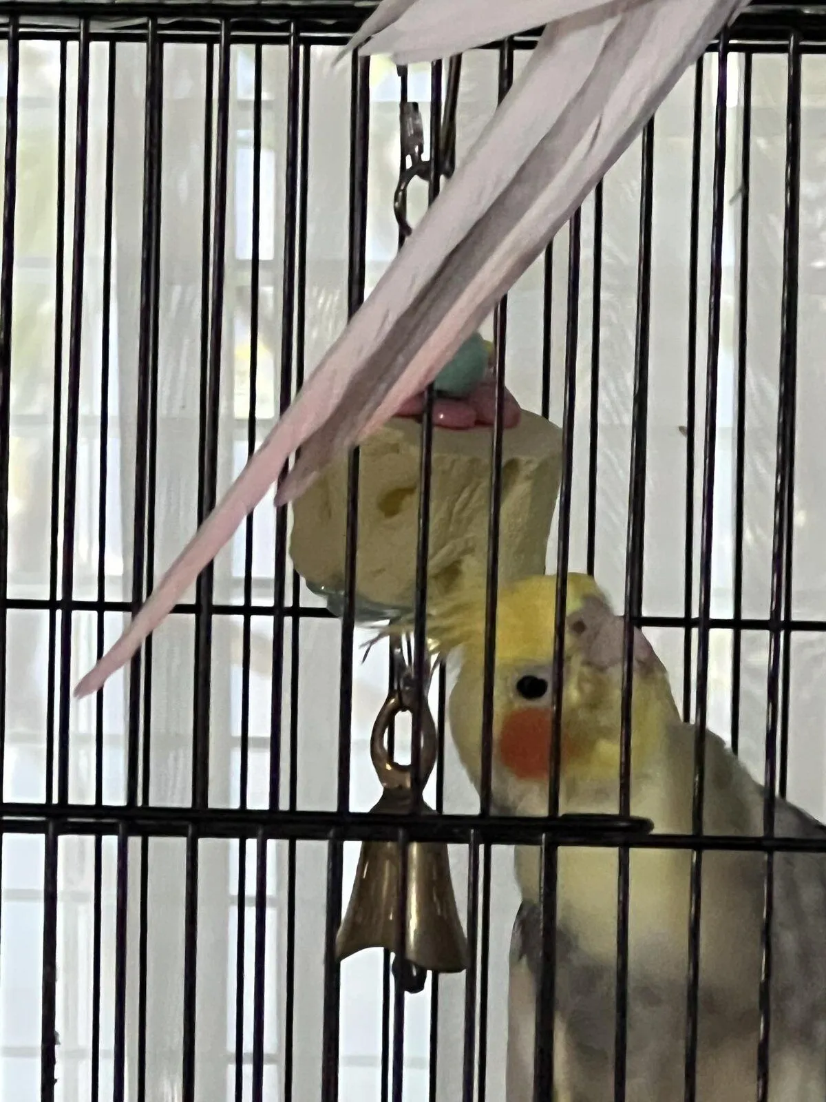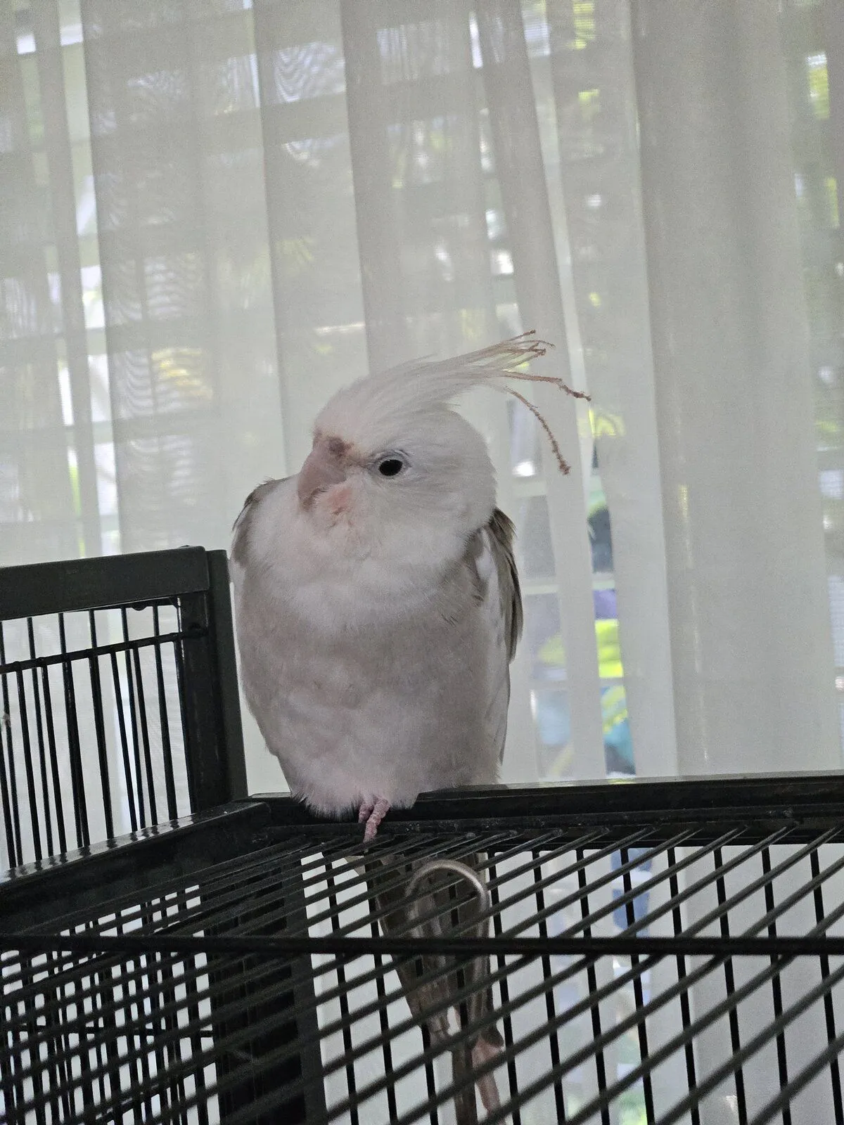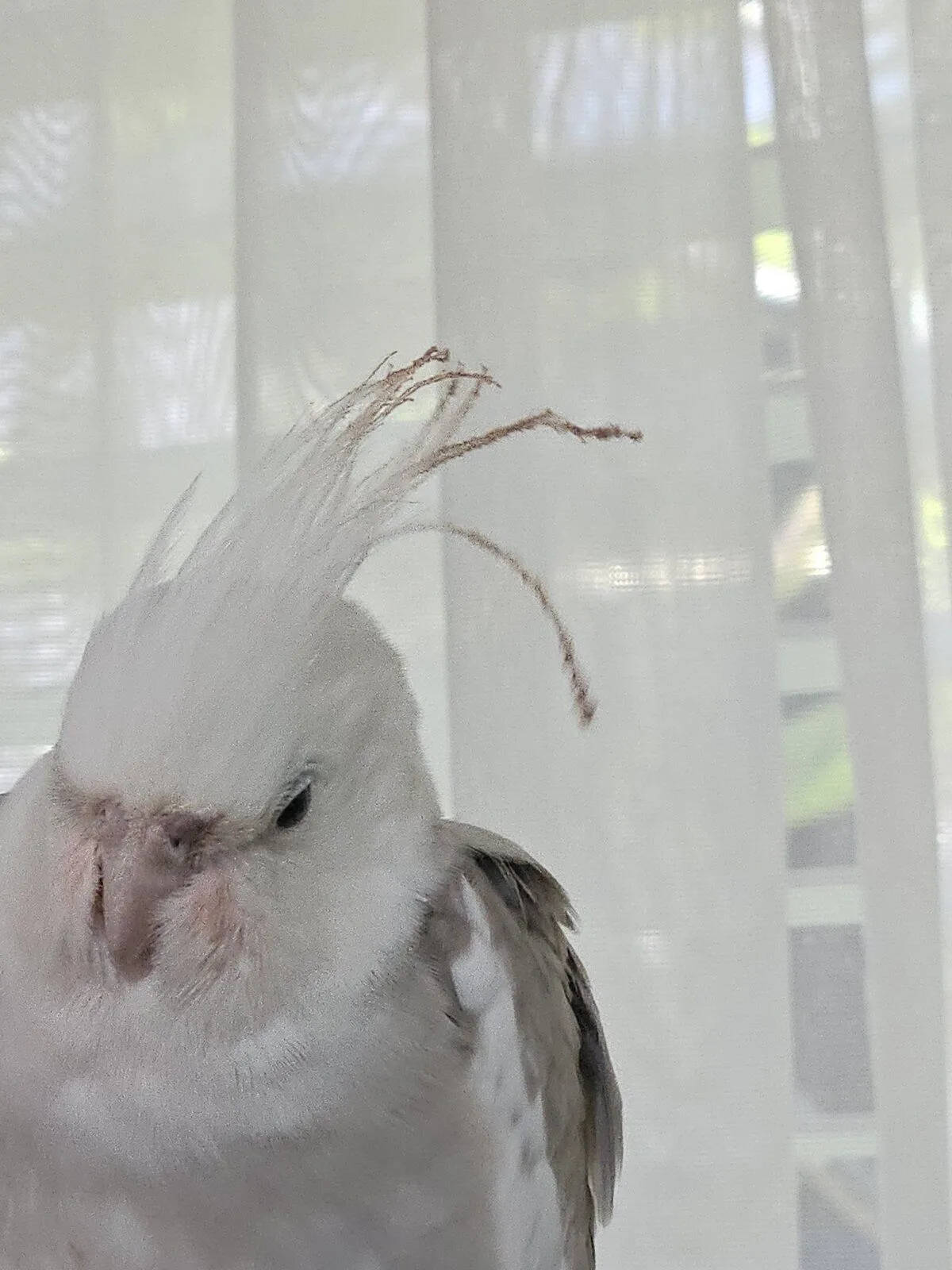 He's older than 2 years, and suddenly the end of his tail, around his beak, and his head feathers are turning a pinky colour - his head feathers are also no longer standing tall and proud they are sagged over and look to have something caked up on them.