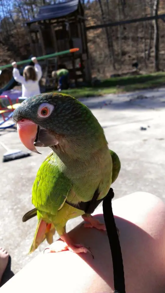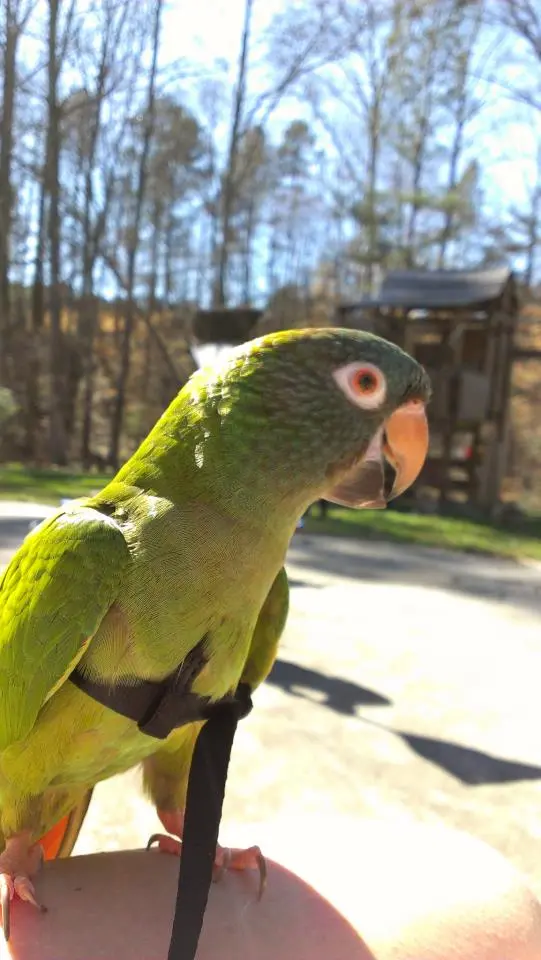 So I have been introducing him to the aviator harness for about a week now and he finally seemed ready for having me put it on. It wasn't hard to get on really he just wanted to chew it as it went on lol he wasn't stressed hardly at all! We just wore it around the house for a couple hours and then I took him outside it was the perfect day for it! Its been rainy so much lately and we got one sunny, hot, calm day perfect time to take him out and he loved it! I'm so glad the harness worked out well for him he liked being out so much but he wouldn't leave me I tried to put him on a perch outside and he just crawled right back up my arm made me happy