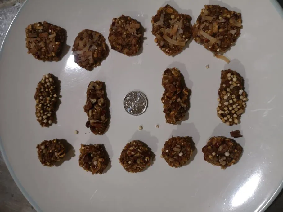Bottom row are the round ones, topped with a little pecans and puffed quinoa.