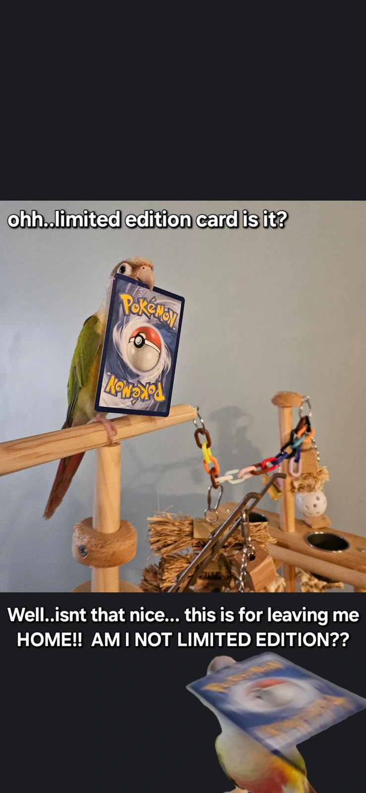 You need to post more Teeko being a brat pictures!TRUTH. No one would believe me, but there is a BRAT IN MY BIRD!!