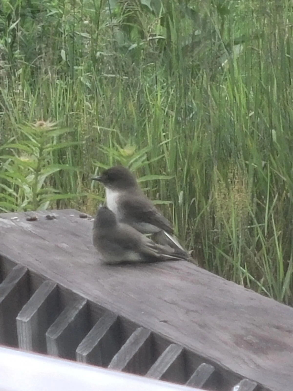 Anyway, mama phoebe has three chicks this season, and this is the first I've seen them come out from the nest. So cute! And so exciting to see mama gathering food and bringing it to them. Good Mama!