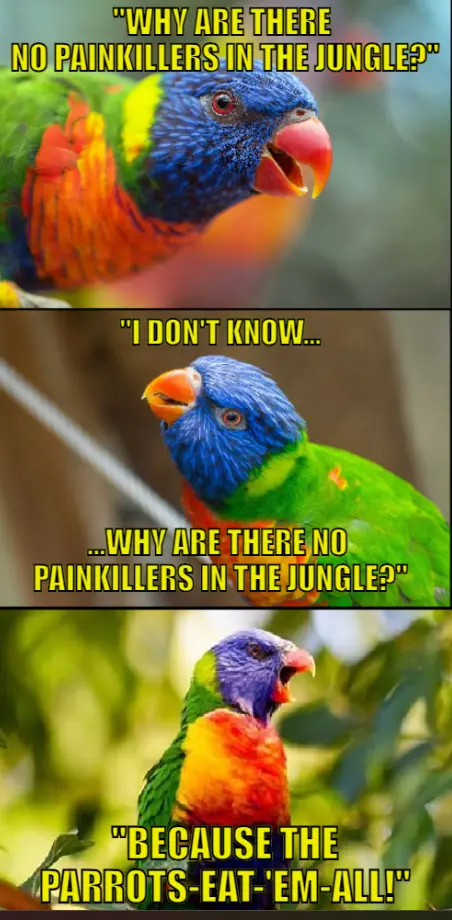 OHHHHH! I get it now, lmfao thanks for the explanationI think it’s a pun lol. Paracetamol. Parrots-eat-em-all.
