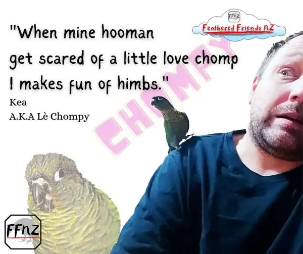 I'm convinced that our birds don't understand that since we don't have a nice dense coat of feathers their "love nips" and grooming attempts are painful! Parrots groom each other all the time but their beaks don't touch each others' bare skin. Without feathers a parrot's bare neck is about the size of a Sharpie marker. Imagine how thick and protected our necks would be if we had such feathers!