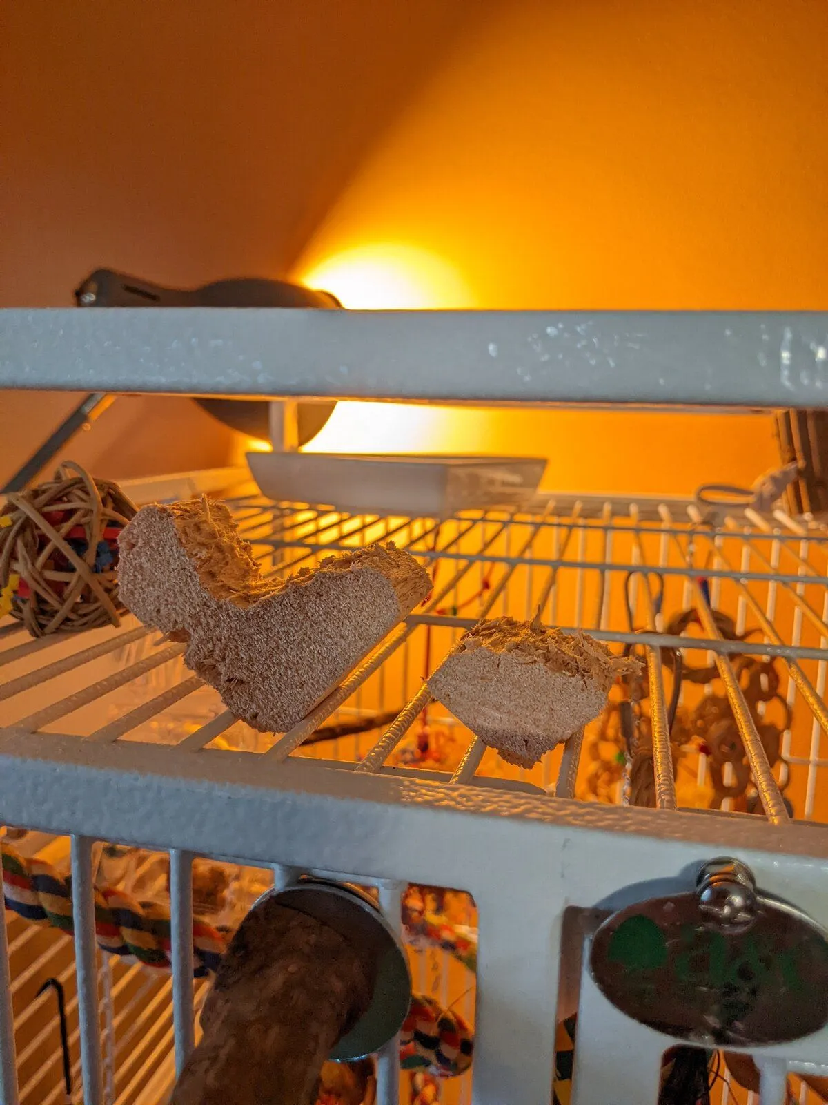 Could be, but also he us now comfortable and knows how nice and warm it is. There us a little learning curve, as they learn how wonderful it is. Mine will snuggle right up to it when perfectly fine and healthyI think Cotton might be sore after his tumble - he's been taking his normal nap times right under the heaterI might try to mount it on the side of his cage instead but I need to make sure the bars won't get too hot.