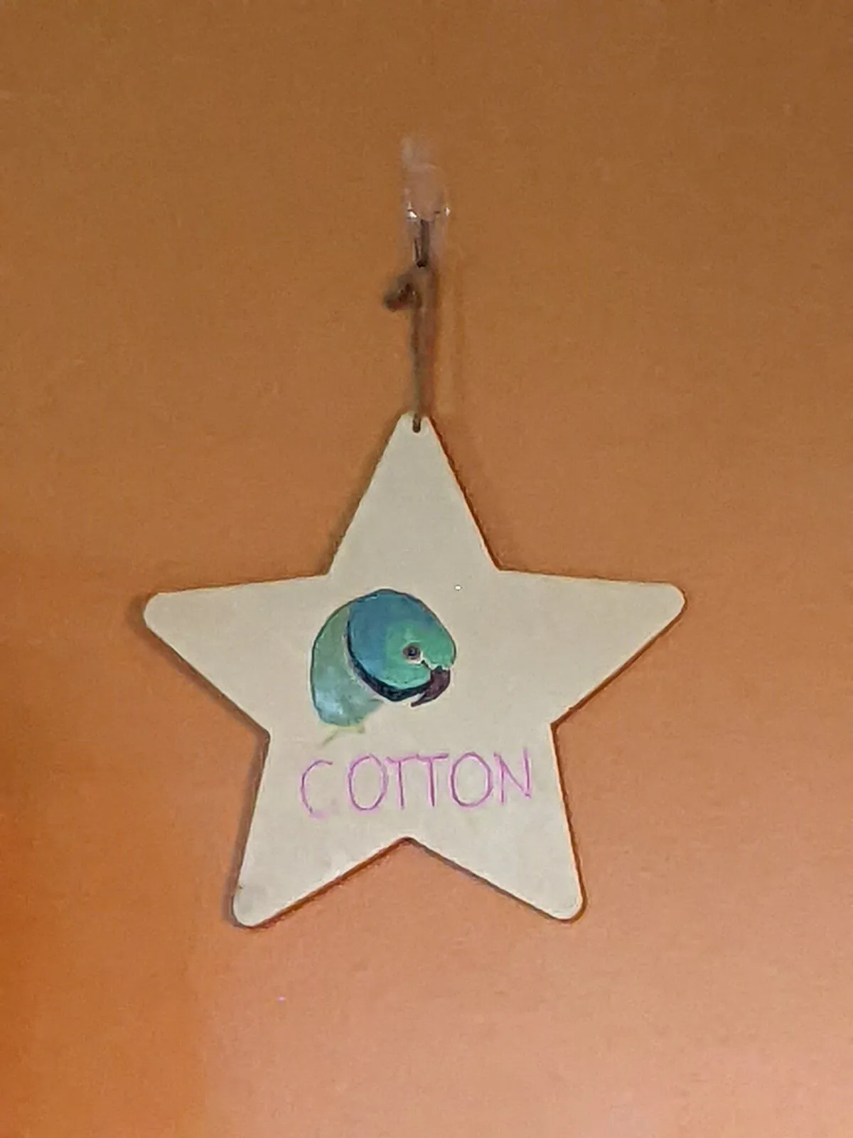 Cotton was 18 months in December but I don't know his actual hatch date. I made coffee yesterday morning and let Cotton out then noticed tons of white stuff falling out the window.