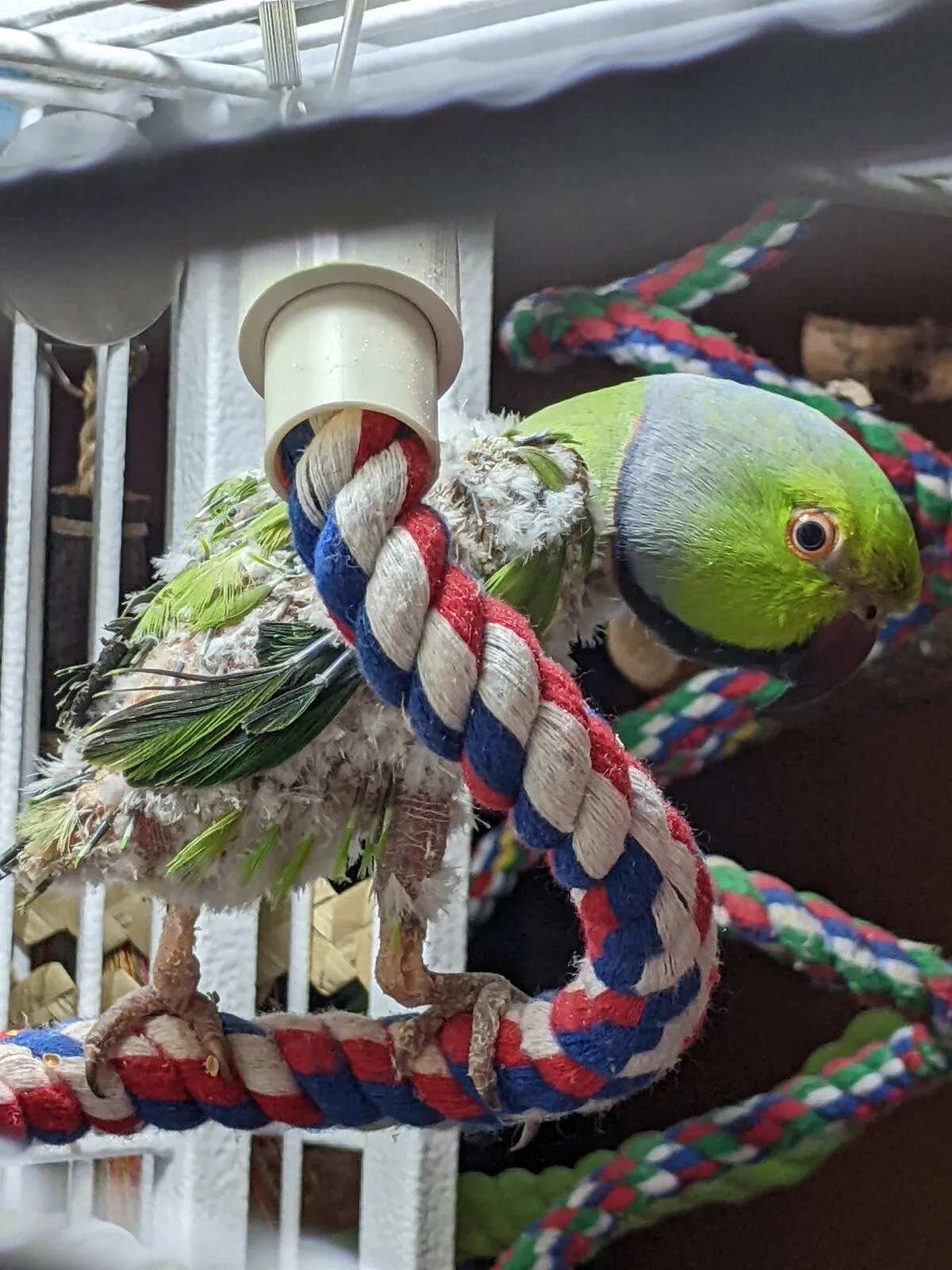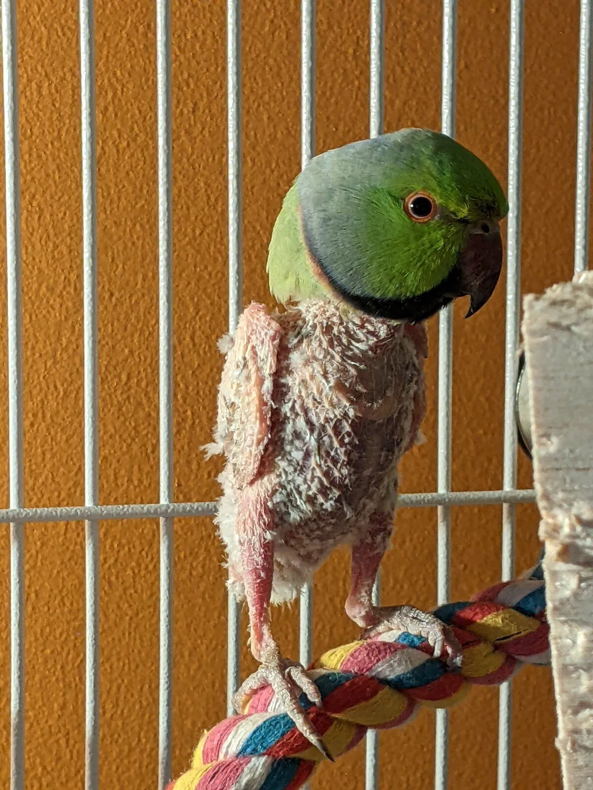 And of course this morning there were about 10 tiny lime green feathers in the bottom of the cage