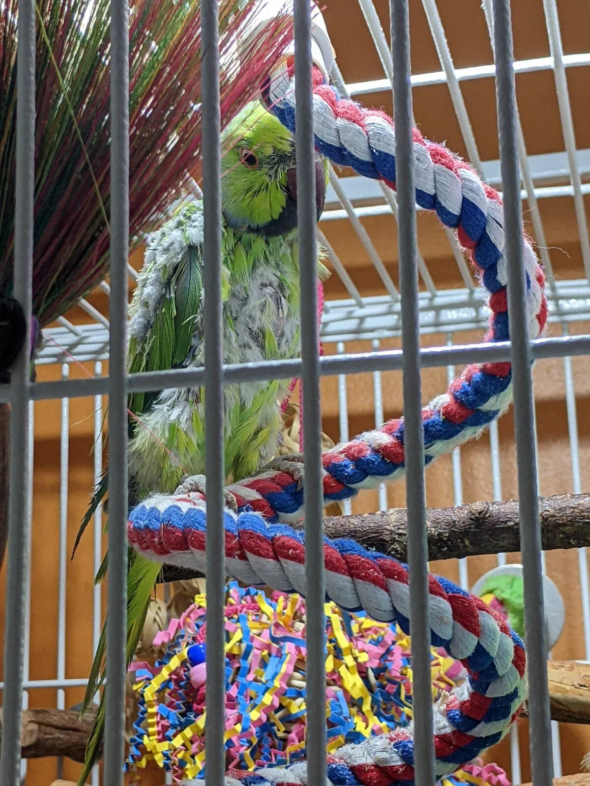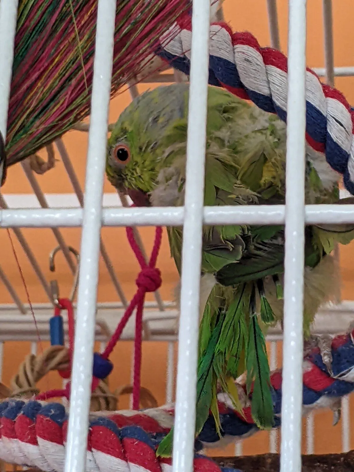 AND he thought hard about taking a second walnut directly from my fingers (through the bars) but decided against in favor of a warm perch and a nap.