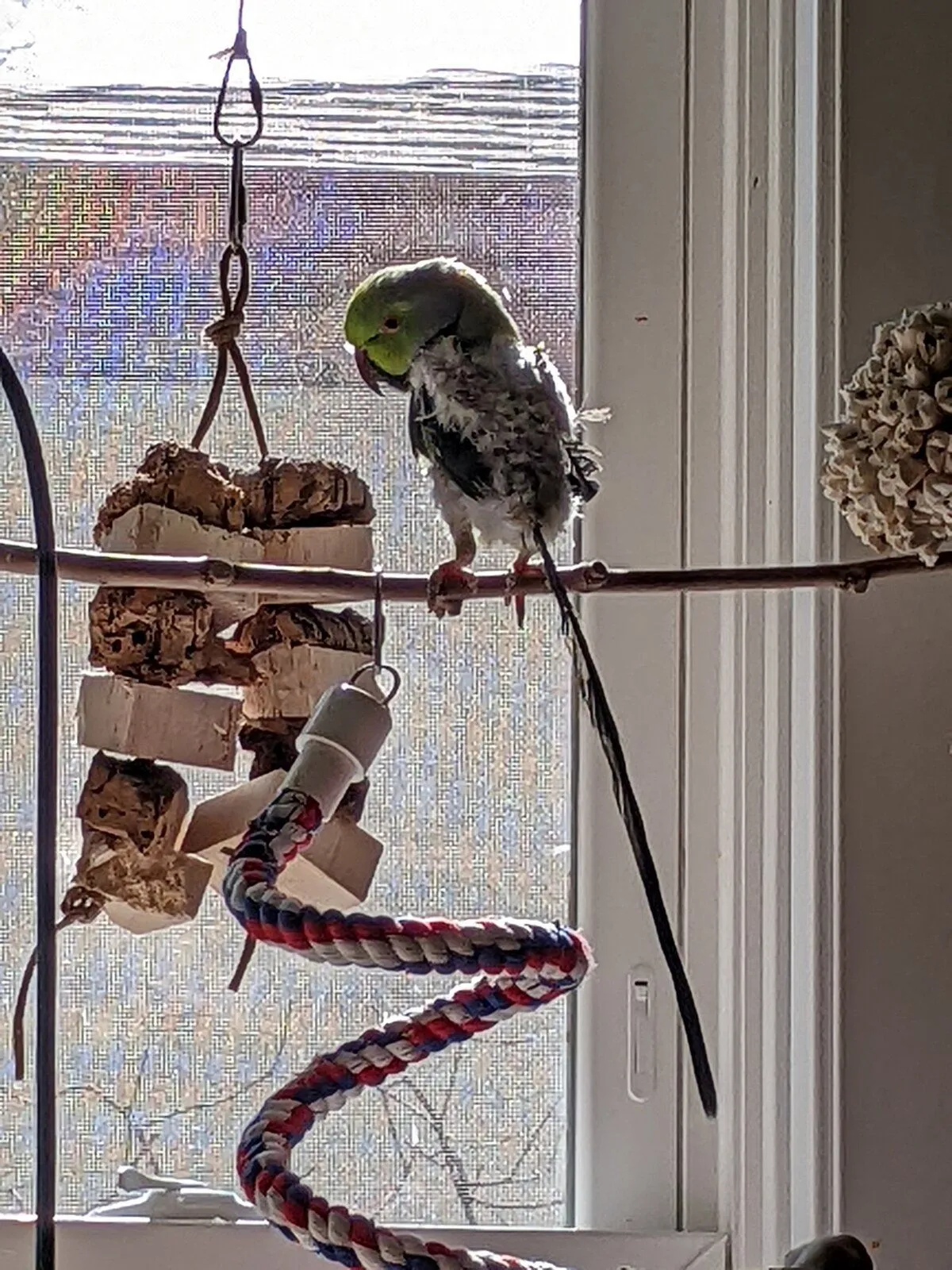 Cotton looks VERY angry at you for taking that picture: "Shtap lookin' at my tail, mom, it's just extra long and beautiful!"It's nuts how much longer they are in relation to his body than most IRNs I've seen