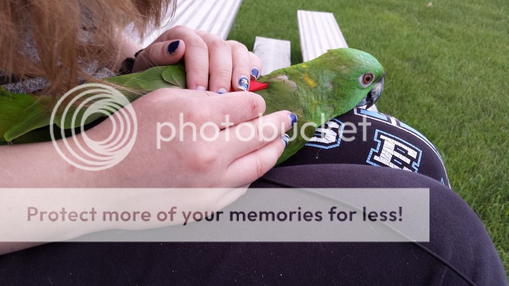 Pic of the old guy hanging out...This month is a year since I adopted the crazy green bird!