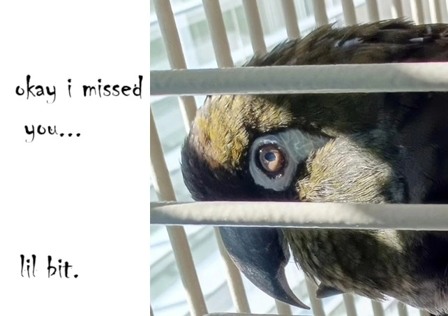 I have been married to the OP here (aka GaleriaGila, aka Gail, aka Abigail) for 41 years. I PREDATE the RICKEYBIRD by an honorable few months! I have managed the bank accounts, maintained the household, kept the car in excellent condition, driven the wife and her darling to countless vet appointments, tolerated decades of 100-decibel insults from said parrot, and carried out a million other husbandly duties... and yet...