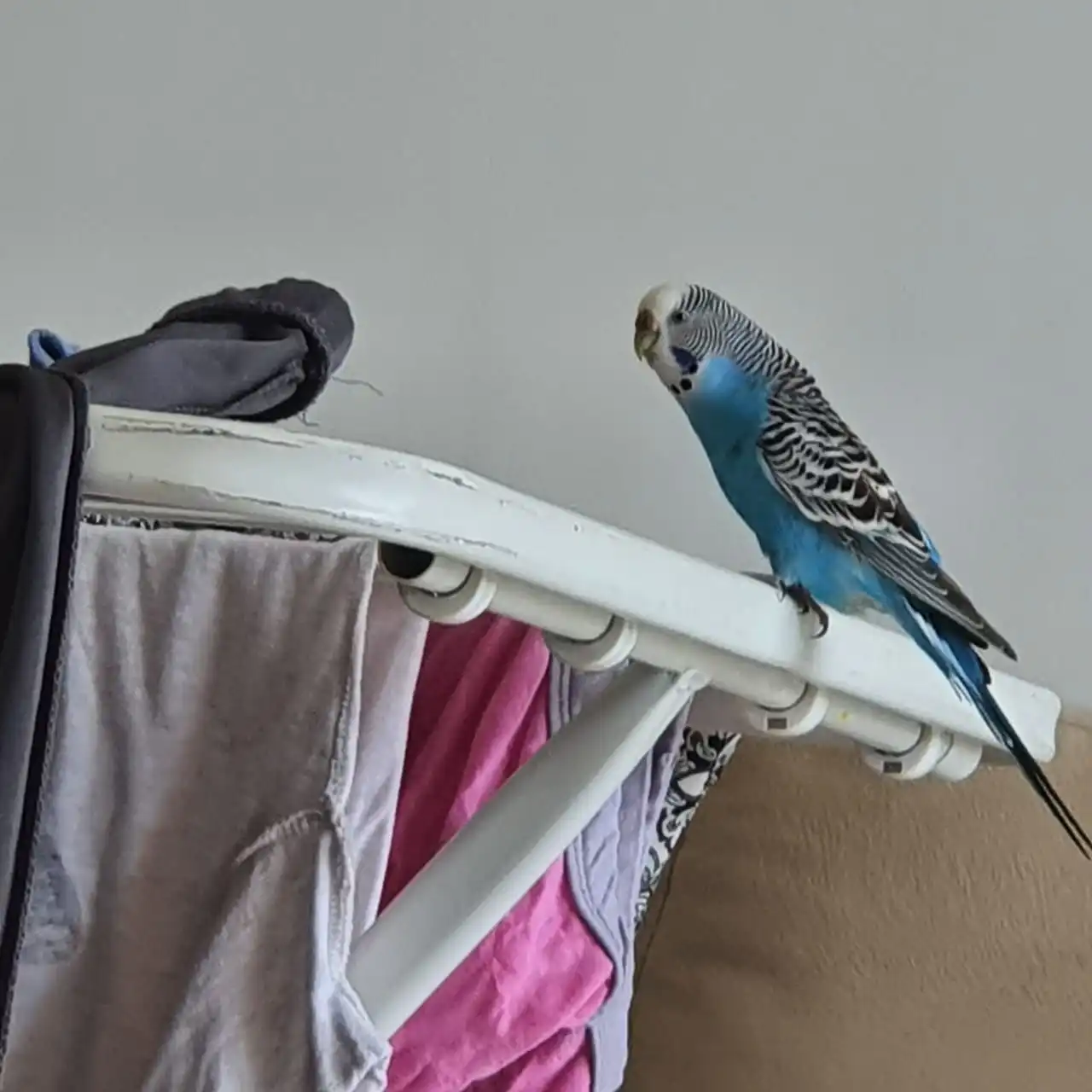 - 2 female budgies i have a green named tofu she is 1 years old(she turned one years old in April) and i have a blue budgie named sky she is the younger one she is younger then tofu by a few days