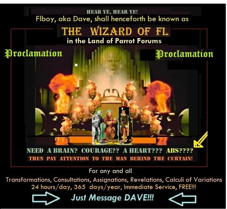 Let the PF lands ring in joyous celebration of Dave's new proclamation, which extolls his matchless expertise AND generosity!