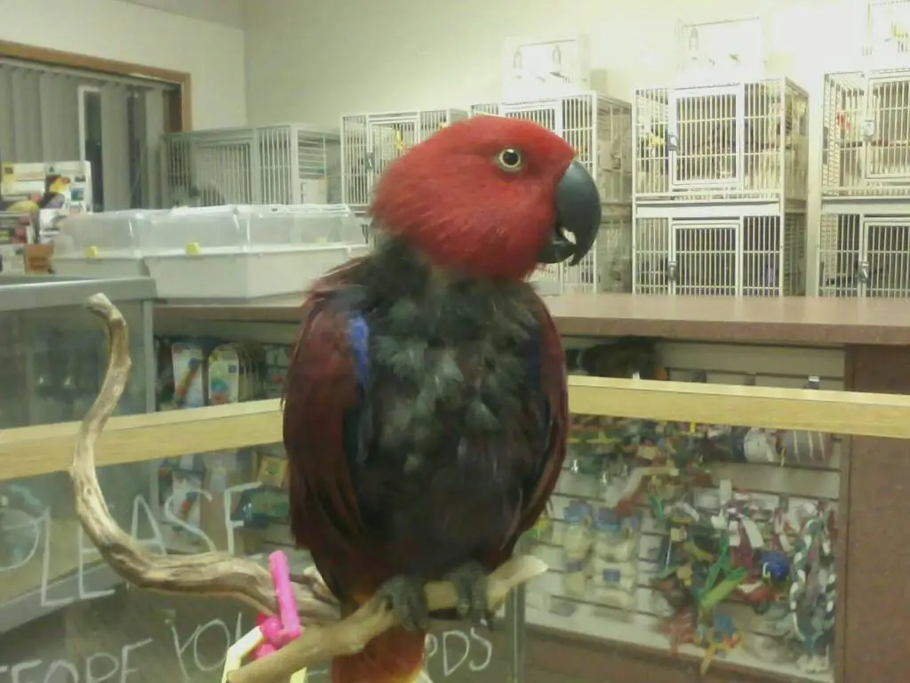 My husband and I went to a pet store and we found a female vos marie eclectus She is so sweet. The owner of the store said that the guy he got her from was not very nice to her but we held her and pet her she was so nice she would go to anyone who would give her attention, she would whisper in our ear. She is 3 or 4 years old. They are only asking $250 for her cause she is plucked.