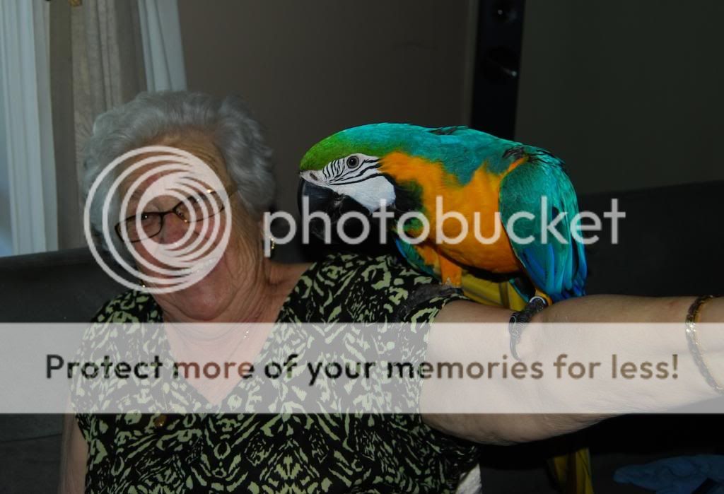 My nana is staying with us for Christmas, and Fargo just loves her.. No idea why, he kept trying to fly to her and every time i got him off her, he would just fly back hahaha Nana isn't very well, so i just love this photo of them both