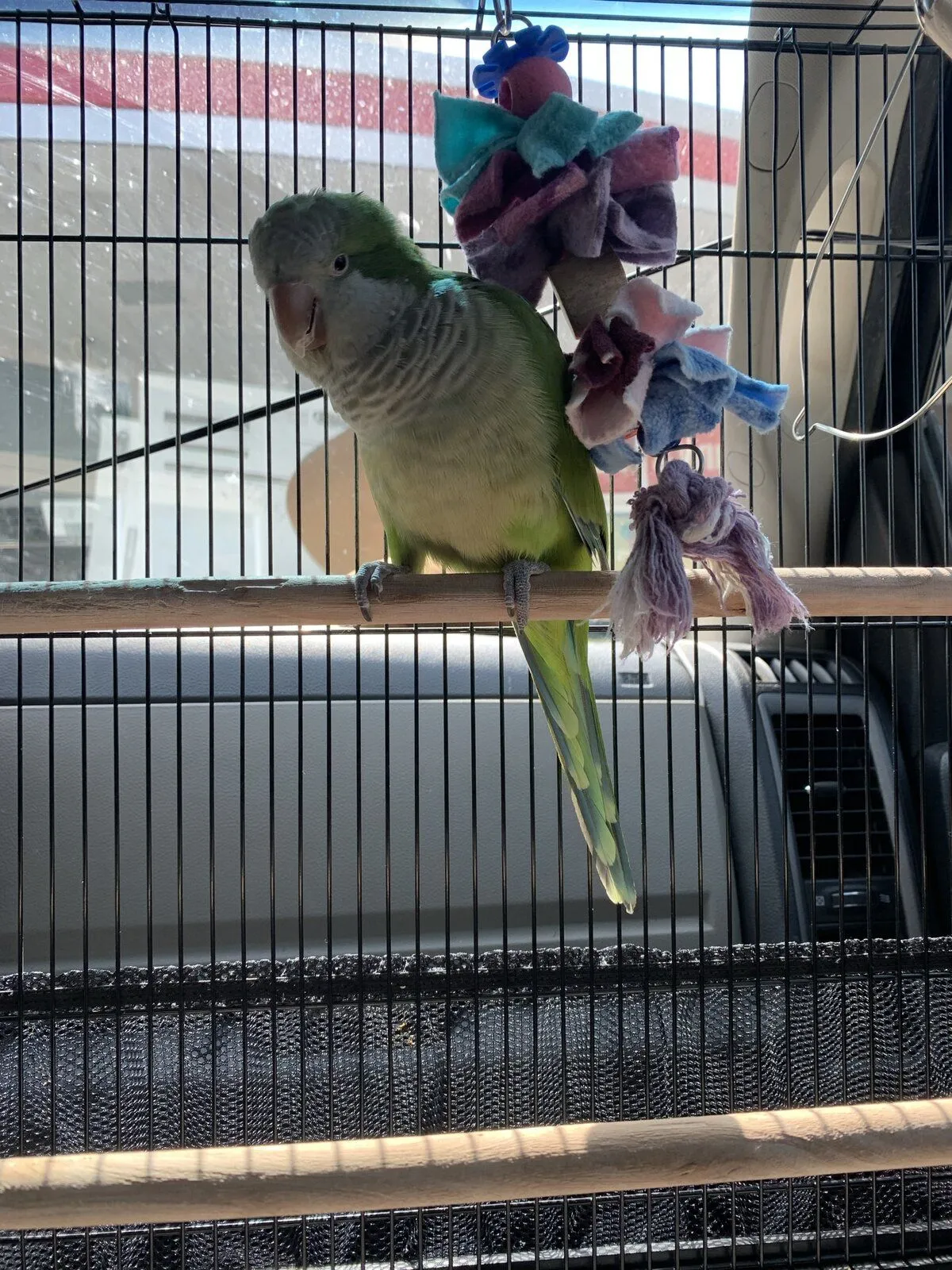 Tony is such a pretty boy! I just want to cuddle him because he looks so soft and fluffy but the beak sure makes me hesitate!Tony on the way home!