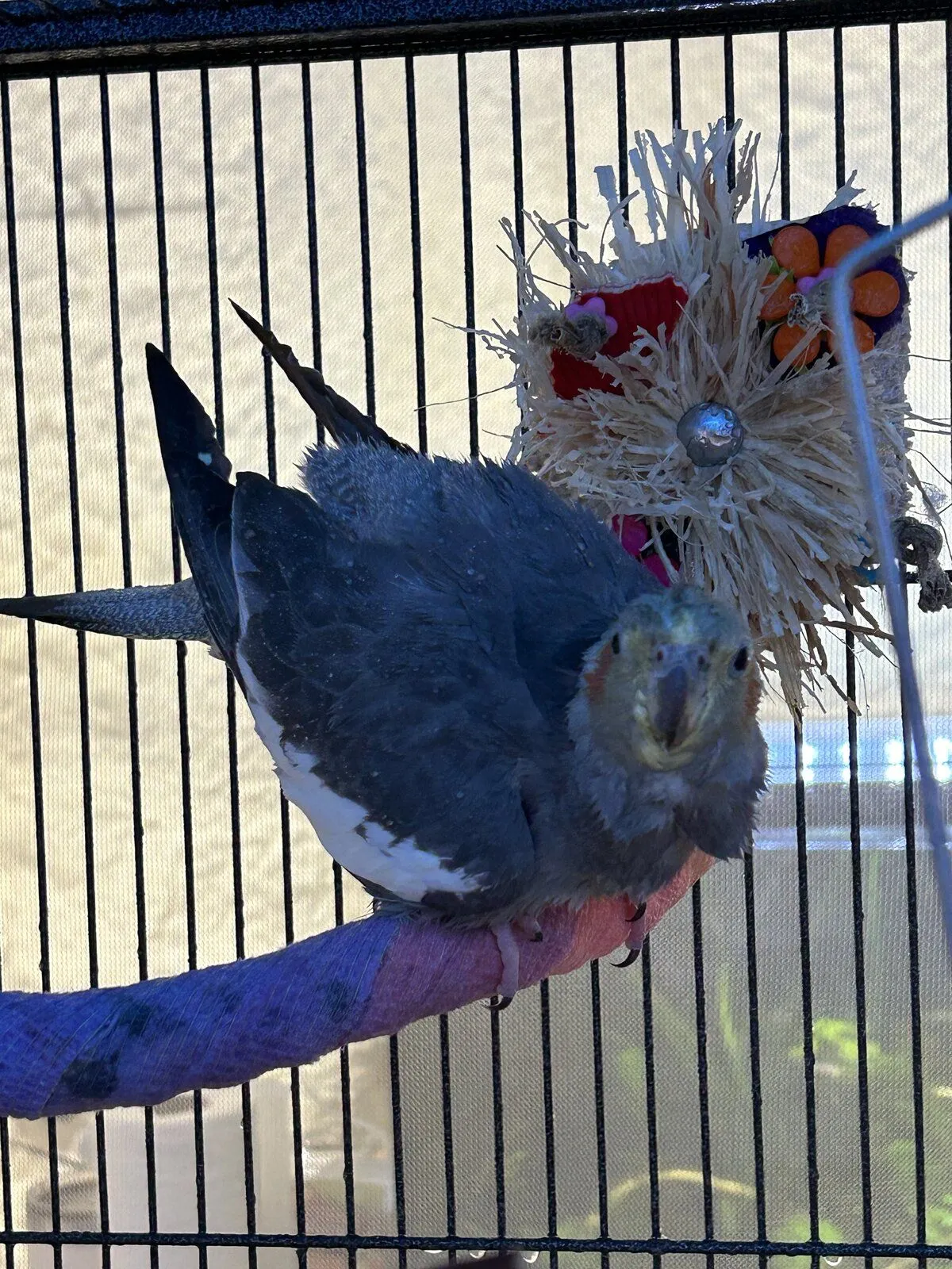 The owner had clipped his wings just 2 weeks before we adopted him!