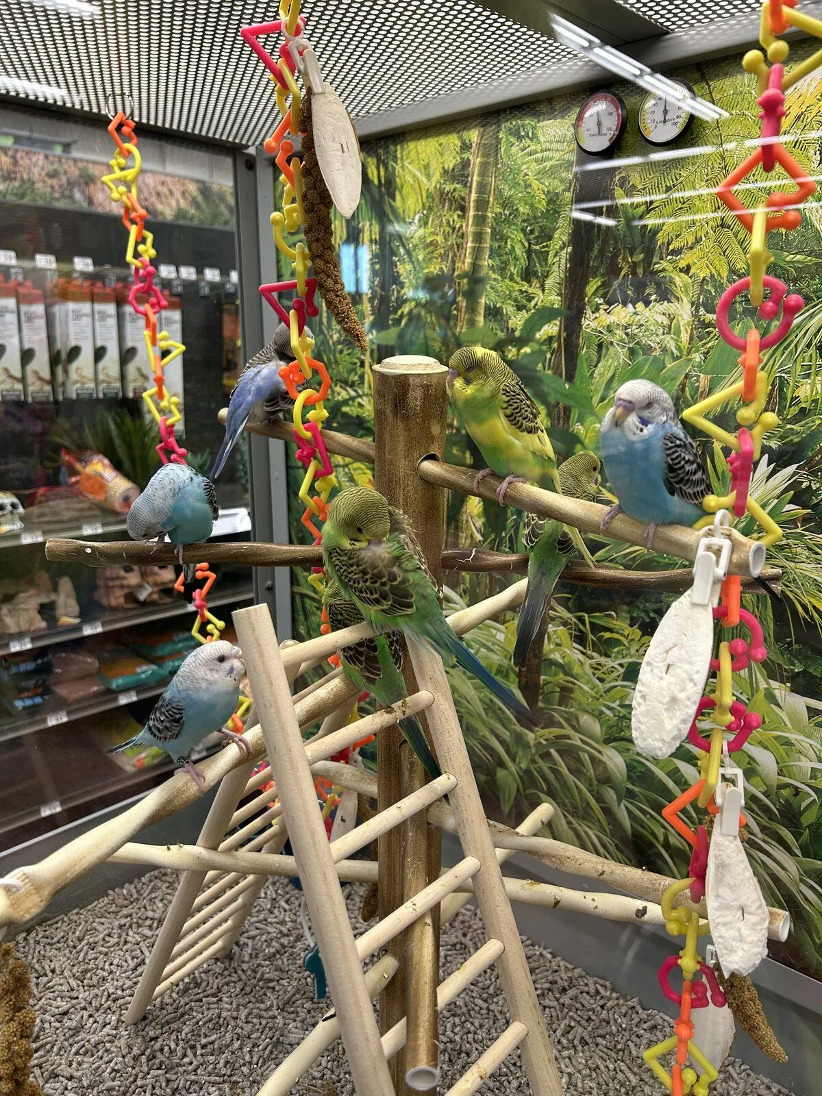 I know the feeling. Every time I go into a pet store and see all those cute little budgies I just want to take them all home with me! I avoid going in for this reason. Someday I want to have room for a really big bunch-o-budgies!Isn't it terrible going into pet shops and not being able to take ALL of those beautiful babies home?! I almost got sucked in to buying a moustached parakeet not so long ago, s/he was just the sweetest little thingWould've been a very expensive buy though cos I'd have had to pay for an extension on the house to fit in yet ANOTHER bird cage, that was pretty much the only thing that stopped me!