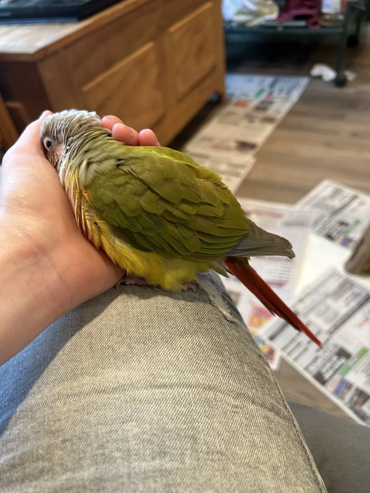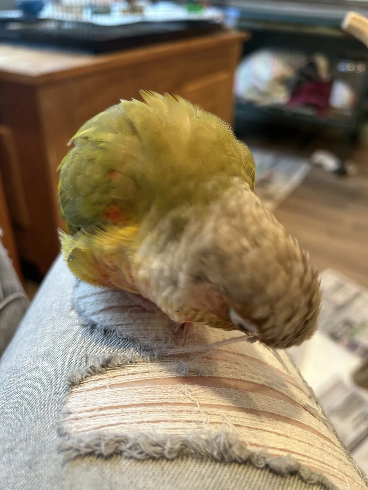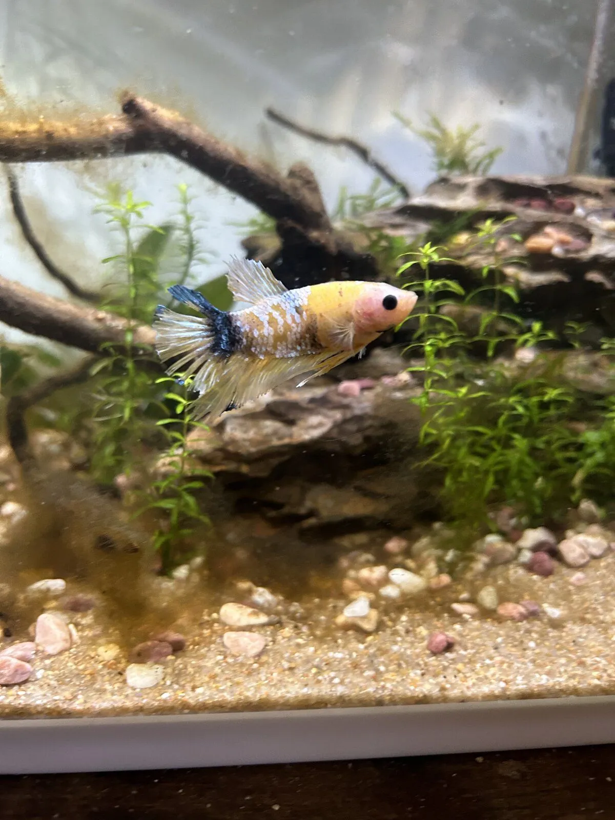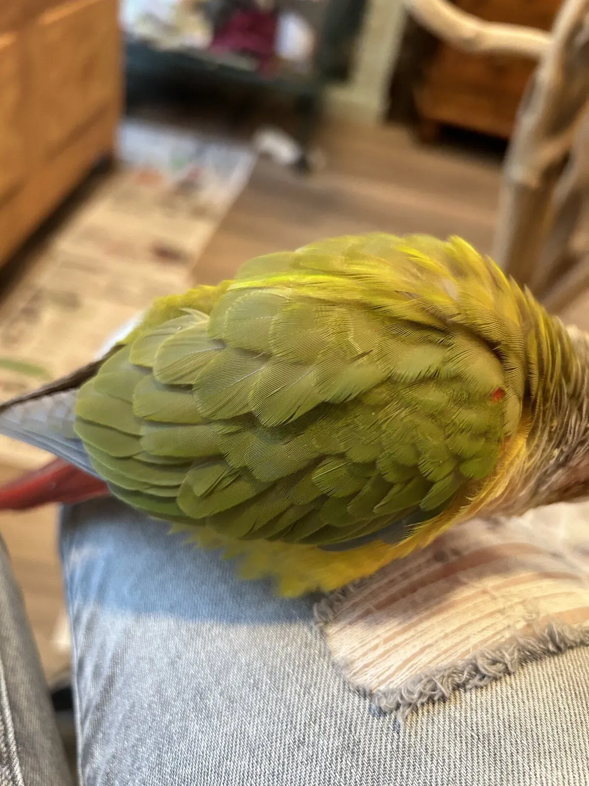 Look at this handsome fella! He’s lost almost all his blue. His tail is shredded a bit, but healing.