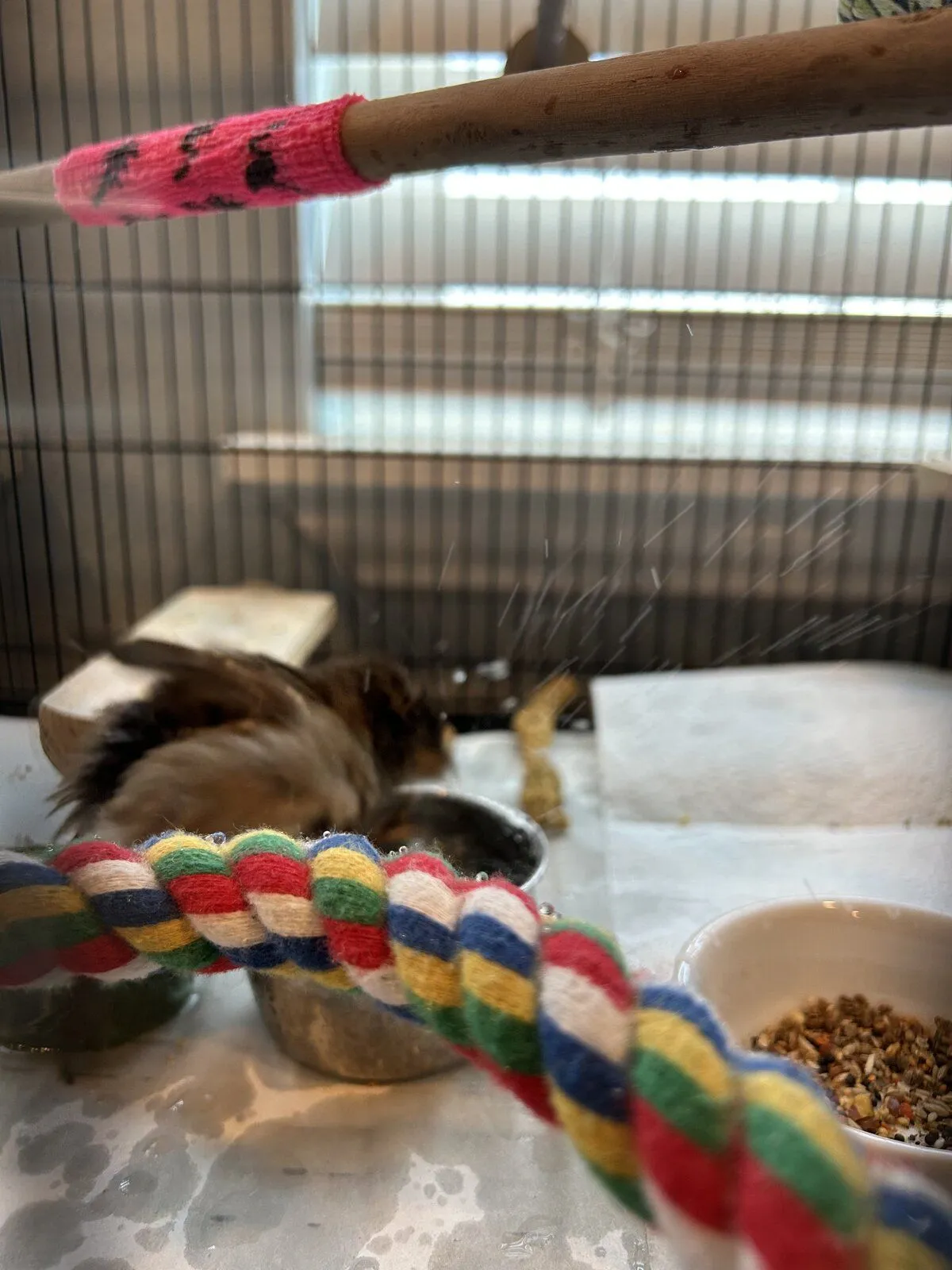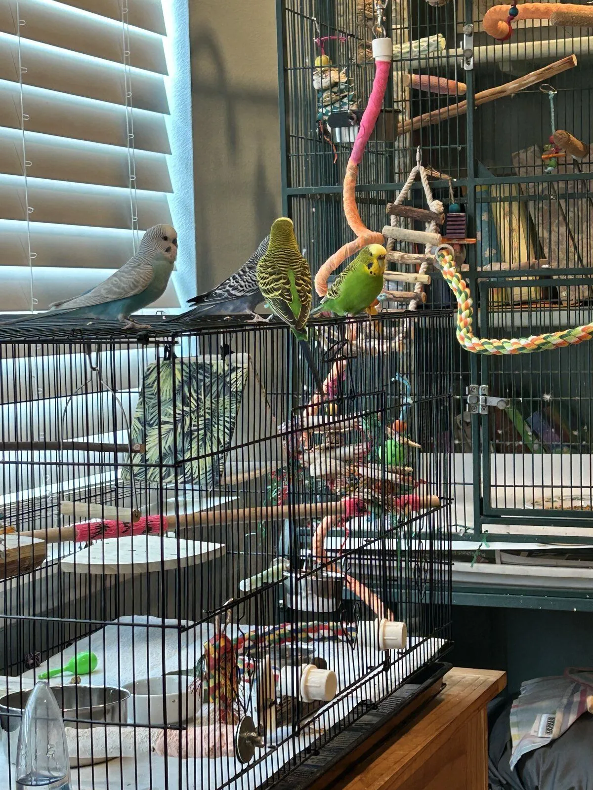 - Fang ({ab}normal grey cockatiel), Valentino (budgie), Jem (cinnamon cockatiel), Lovejoy(varied lorikeet), Peach (princess parrot)