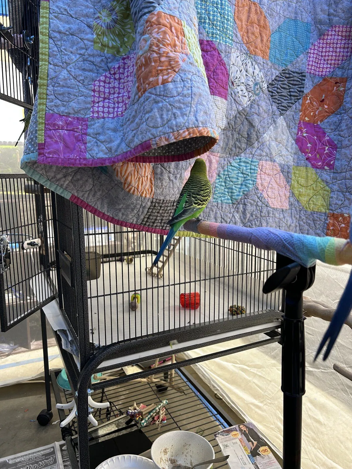 They got scrambled eggs this morning with chop, don’t mind the poop, haven’t changed the paper yet