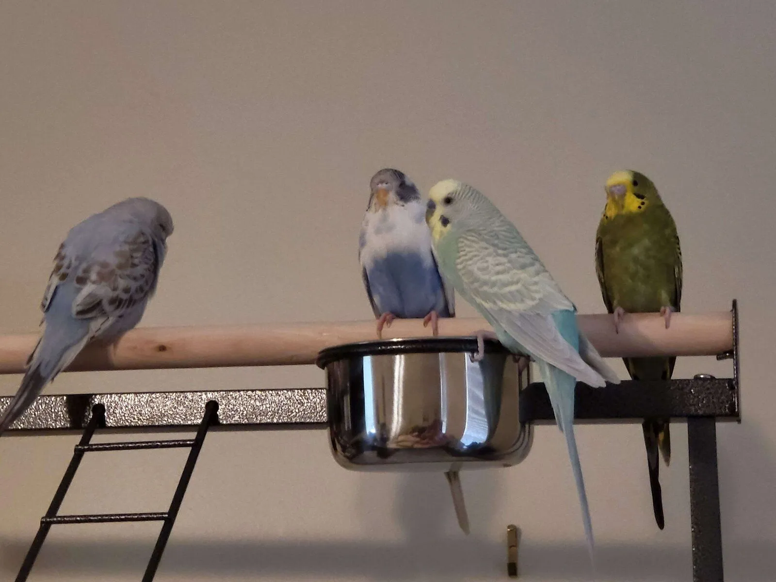 We have 4 budgies, 1 cockatiel, and 1 ringneck. For the budgies I am trying to name their mutations if anyone is willing to help. I have some guesses from researching. Anyways let me toss my babies in here and introduce them and all their glory.