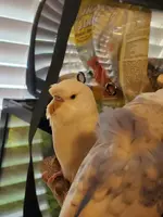 I can't explain how much I love her. She's a literal baby for me and I just want to give her the world. I legit get sad when she isn't near me for a night and I love hearing her. She now chirps like a normal budgie, she's somehow louder than everyone else including the ringneck. She has started to talk / mutter a little and I occasionally hear her say "mwauve". She also likes the game grumps.