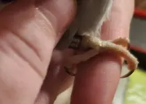 Her leg was thinner than a toothpick. There was a scab ring around it, flakey skin. We took her home that night and Mauve kept looking at me, flying to the perch I kept by my bedside, watching me.