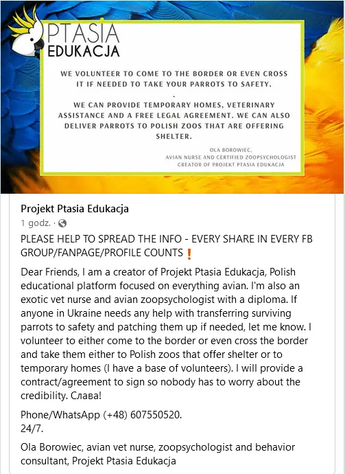 We hope that by allowing these posts that we can help not only the people who are taking in the displaced animals, but also their Ukrainian owners who are dealing with so much.