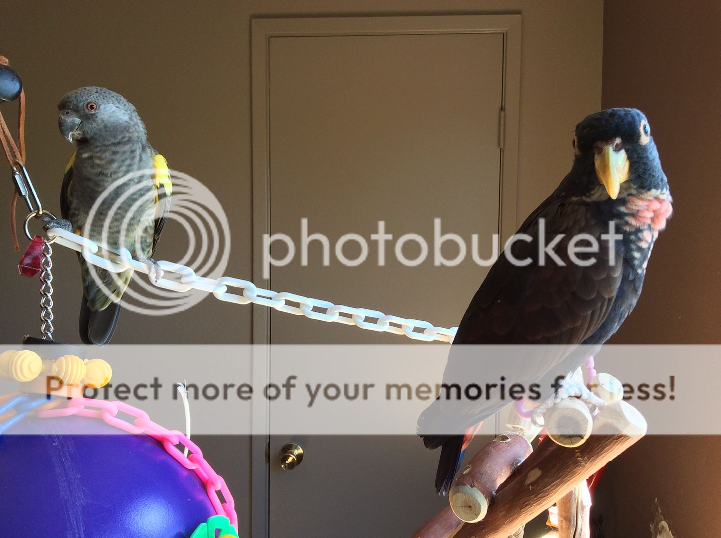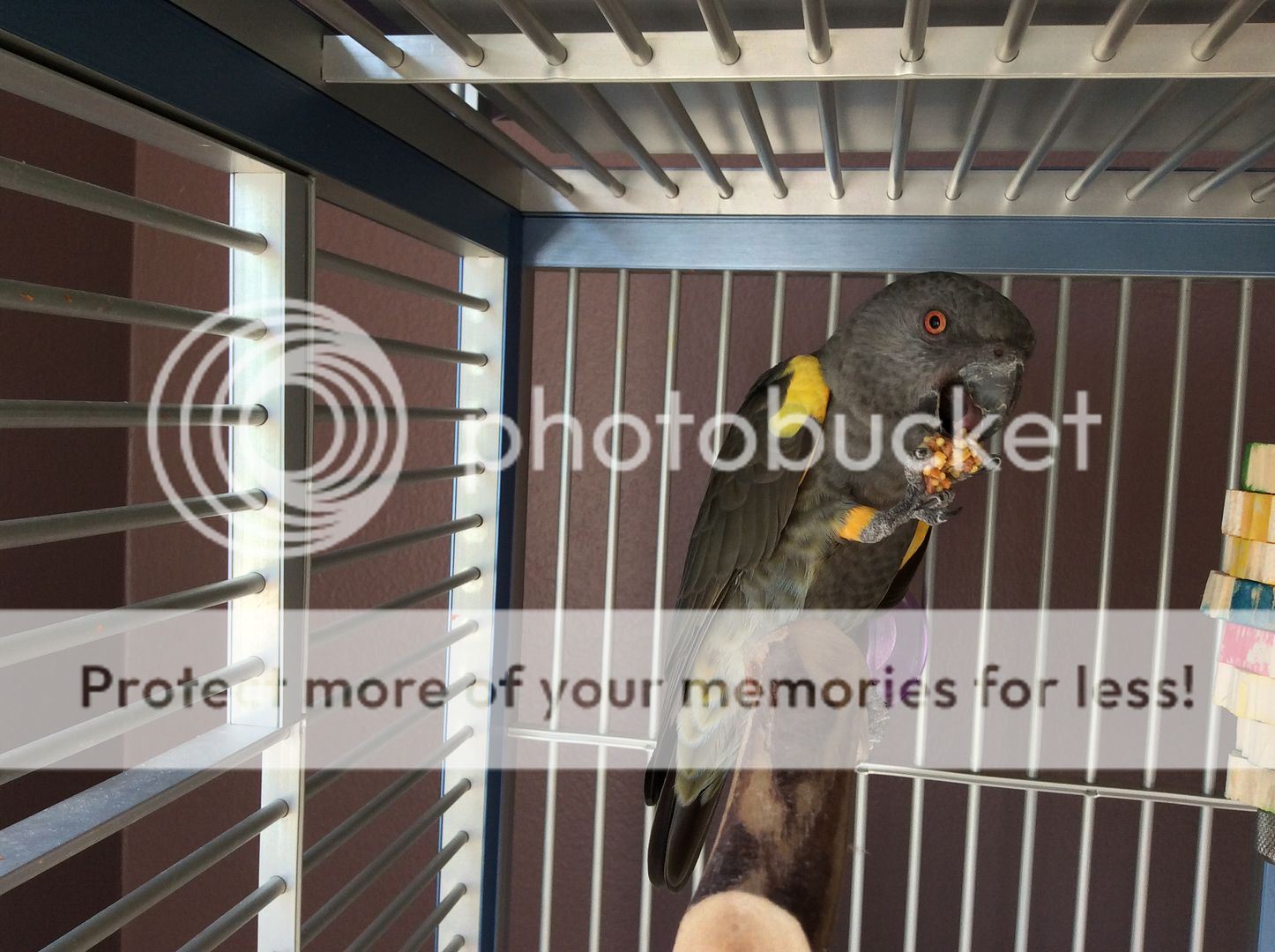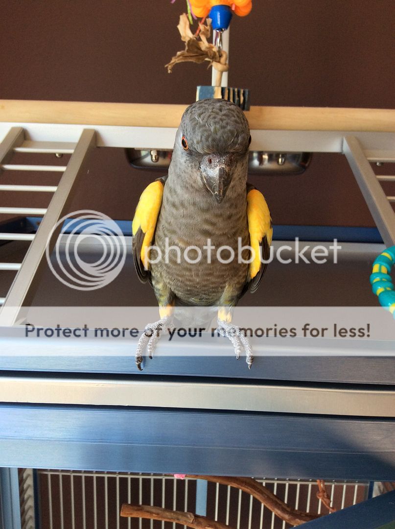 This is my smallest parrot (besides budgies) but by far the biggest handful! He's the one who is constantly trying to look for new ways to get into trouble. He's 2 today.
