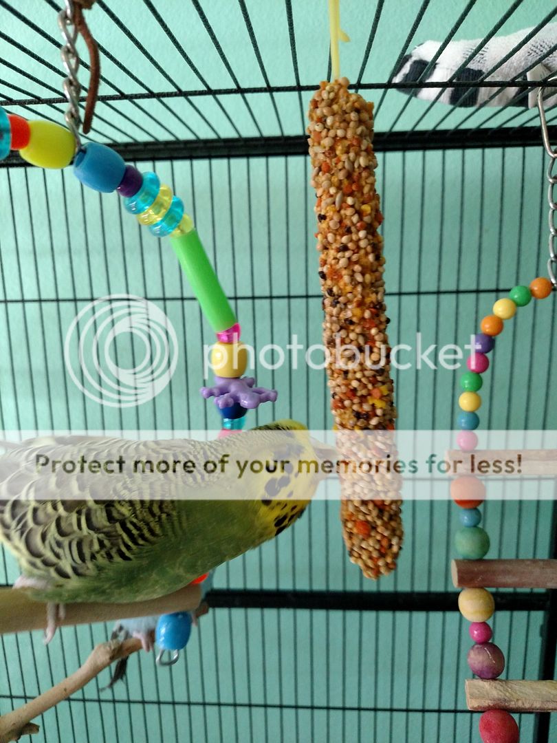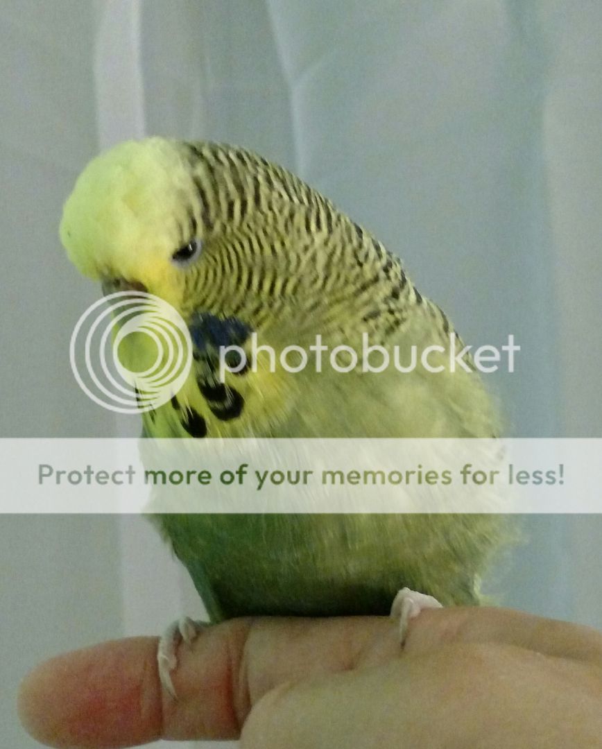 First.... Miss Mink, my sweet English budgie hen turned 2 yesterday (March 7). She is currently molting, so not looking her best.