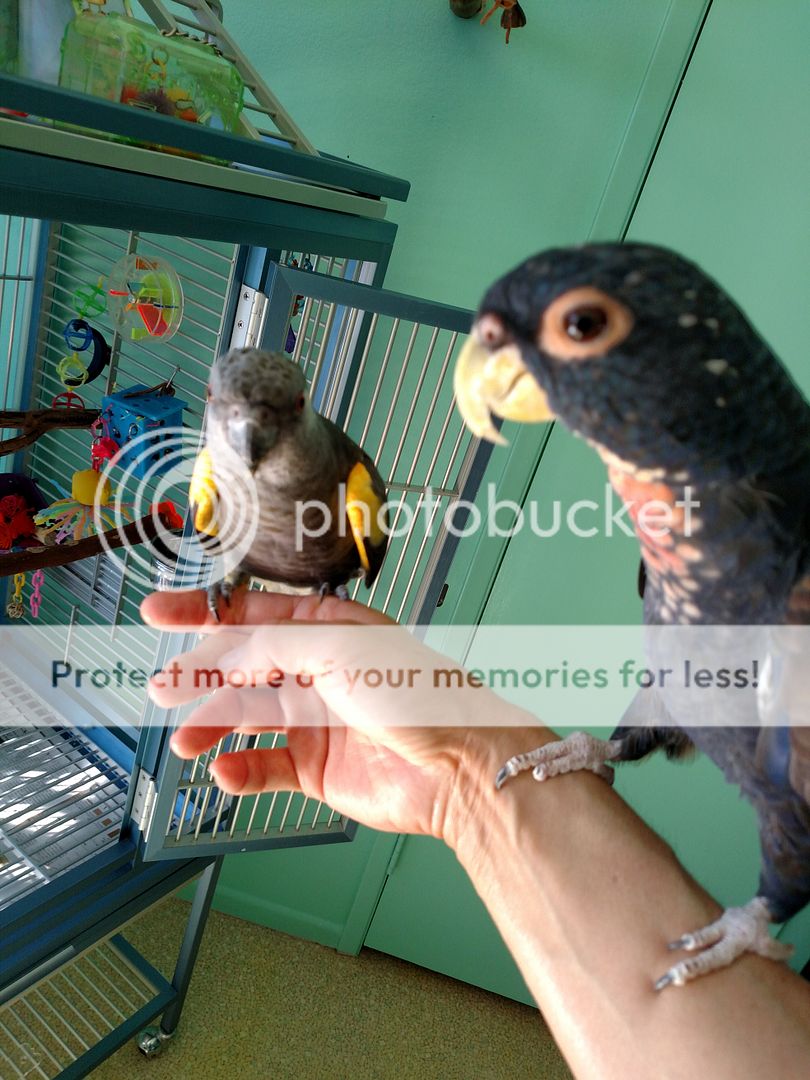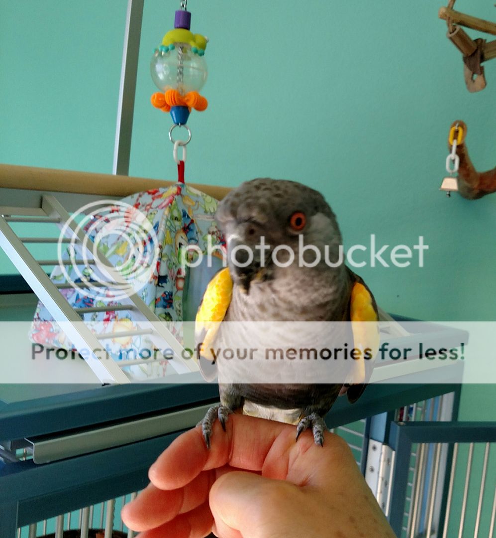 Today also marks one of the first times ever that Griffin stepped up without a seed, and stayed on my hand for some time. Normally he wants a seed to step up or else he's afraid of my hand and will bite. Or else he only likes to jump onto my back.This was a long time in coming, and I'm so proud of his progress. One of these days I will write a post for the Incredible Journeys section.