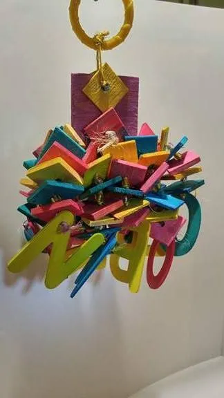 Sorry if you've already answered this elsewhere, but do you dye all the components yourself or buy them premade somewhere? What's the process on that, and can you recommend sources for safe base materials? I used to use sisal rope from the craft store, and then saw something on the Bird Tricks website saying it's unsafe because it might be sprayed with toxic preservatives, but they didn't suggest alternative sources so I'm stuck. Ditto all other kinds of toy building materials. Would love recommendations!I thought I'd add another toy to bump the thread
