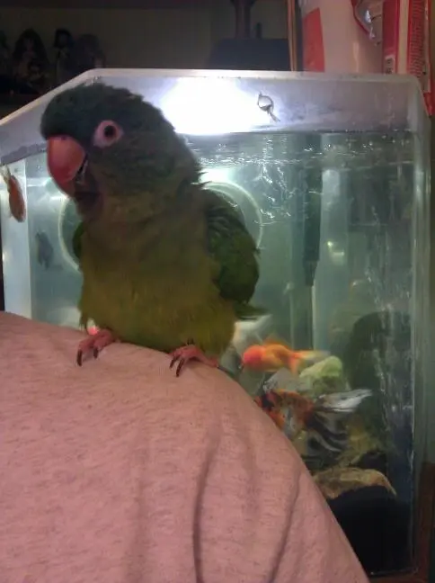 I fell in love after he sat on me, pulling my hair out of my bun and preening it, and chatting up a storm, telling me constantly to ... "step up" haha.
