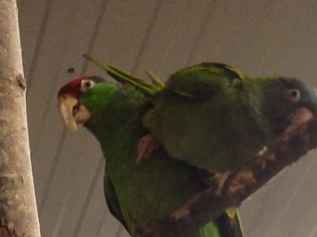As i walk in the first big boy says hello loudly, then raised his head feathers. He immediately lunged angrily, which frightened me because I was looking at what he was eating. It appeared to be a tray of only seed mix. Just like you buy from walmart.