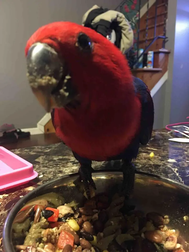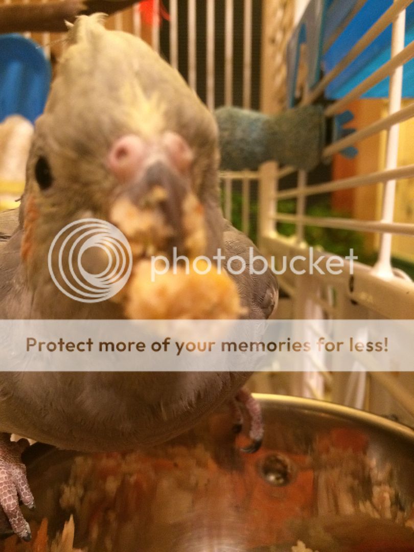 This isn't really a food beard but Poppy is stuffing her beak. She loves a whole cinnamon stick to nibble and play with. Sweet kisses.