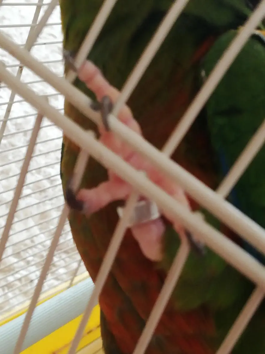 When I've taken her (golden capped parakeet) from my grandma I've noticed that she has some sort of ring? This didn't really bother anyone until I've noticed that she scratches a lot near that area. The ring is too small to get off, should I go to a vet to try and remove it? What was it's purpose in the first place?