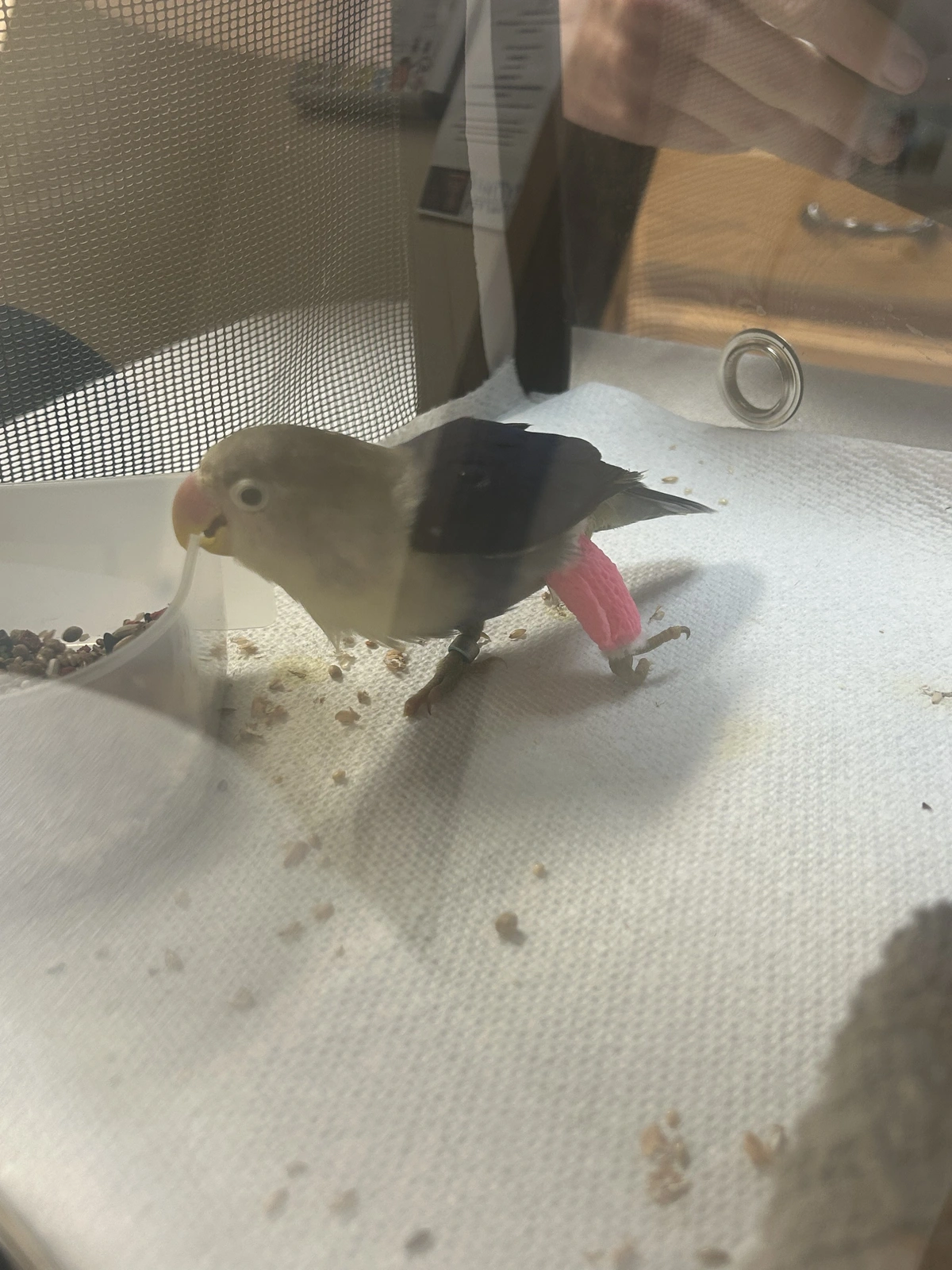 So we just got this little guy yesterday. He’s got a cast on because his ligaments are torn! The vet gave us pain meds for him.