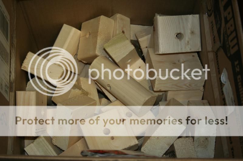 So, after making a COMPLETE and utter mess in the garage (yup, I was NOT about to cut wood outside and/or pre-drill holes outside), I had a box full of THIS....100 pieces in total