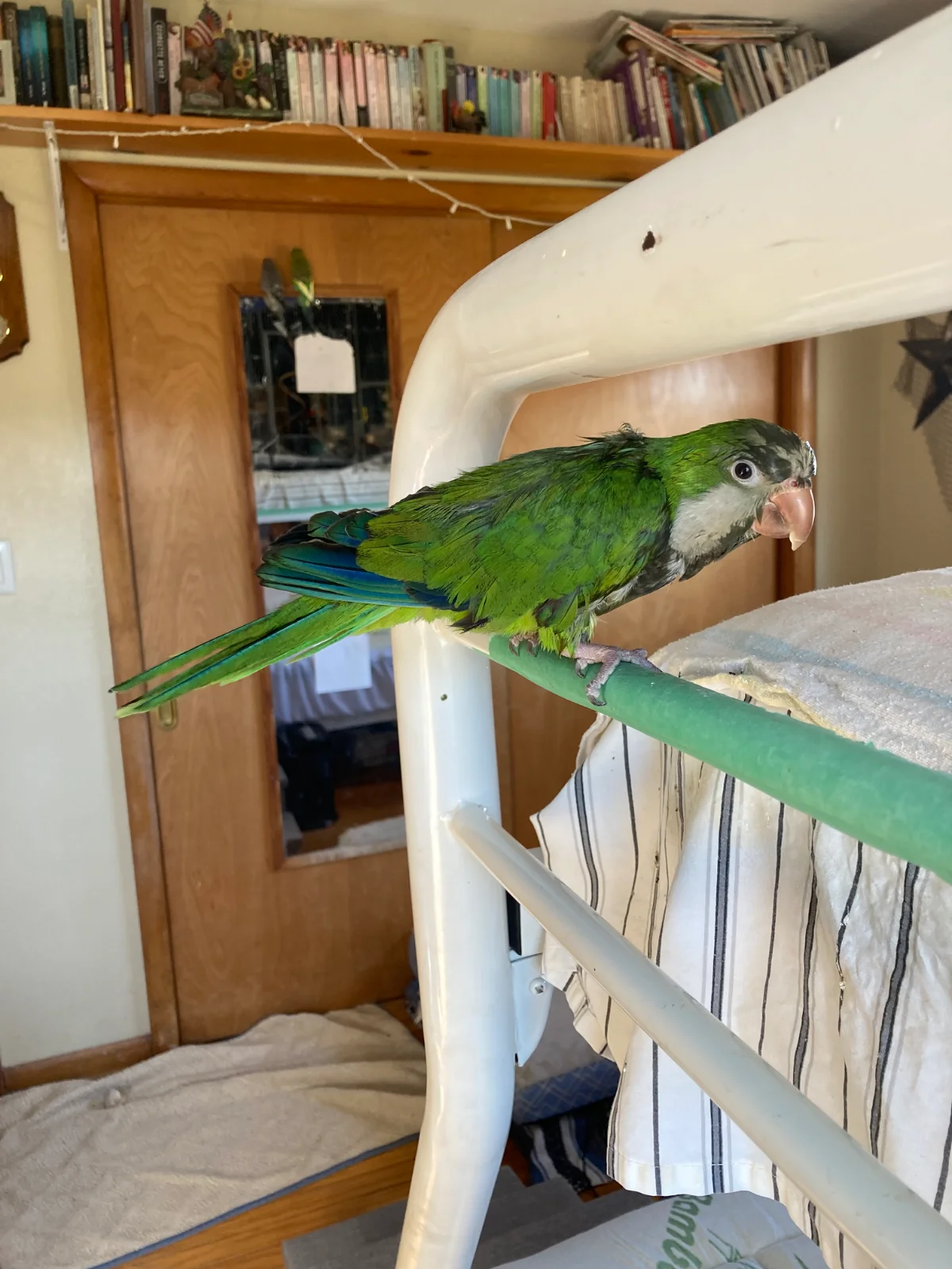 Instinct for survival. Wet feathers mean loss of number one defense, escape by flying as fast and far as possible. Going up high limits this. So heights are not only safe but warm from the sun to dry feathers as they are preened. I don't know where I read that it was around 40+ years ago when I got my first CAG. It instructed to aid in bird security provide a warm safe place for preening after baths. If a crochet hook isn't in my hand I am a compulsive reader. I read just to read, I retain some of the weirdest things. Like this fact. I don't remember the books. They were written by tropical bird avian specialists. Back then there wasn't much CAG specific literature., In a couple of places by different experts I read CAG's have a high need for calcium. A bit of cheese weekly will help out. I didn't. Dogs, cats, people often develop lactose intolerance as when adults. So how could a species not dependent up anything lactose thrive on cheese. I never got around to finding out why. A few years later this was disproved. If you read there are still articles out there that recommend cheese for CAG'S. Sometimes it is a specific type like white. I lost an old article dated from some time in the 1800's, Found it at a garage sale or library bargain basement somewhere. It was discussing the inability to breed beautiful eclectus in captivity. Infertile or no eggs were the only results. Different techniques and suggestions were recommended to aid infertility. I originally planned to look for the time when realization hit the world they were sexually dimorphic. I still prowl library bargain basements.