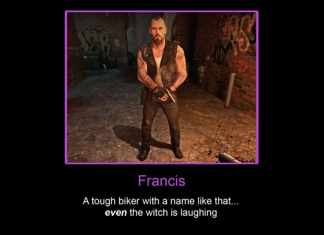 7. Francis (yes, this one is ironic, just like the name for Francis in L4D⦠View attachment 56057)