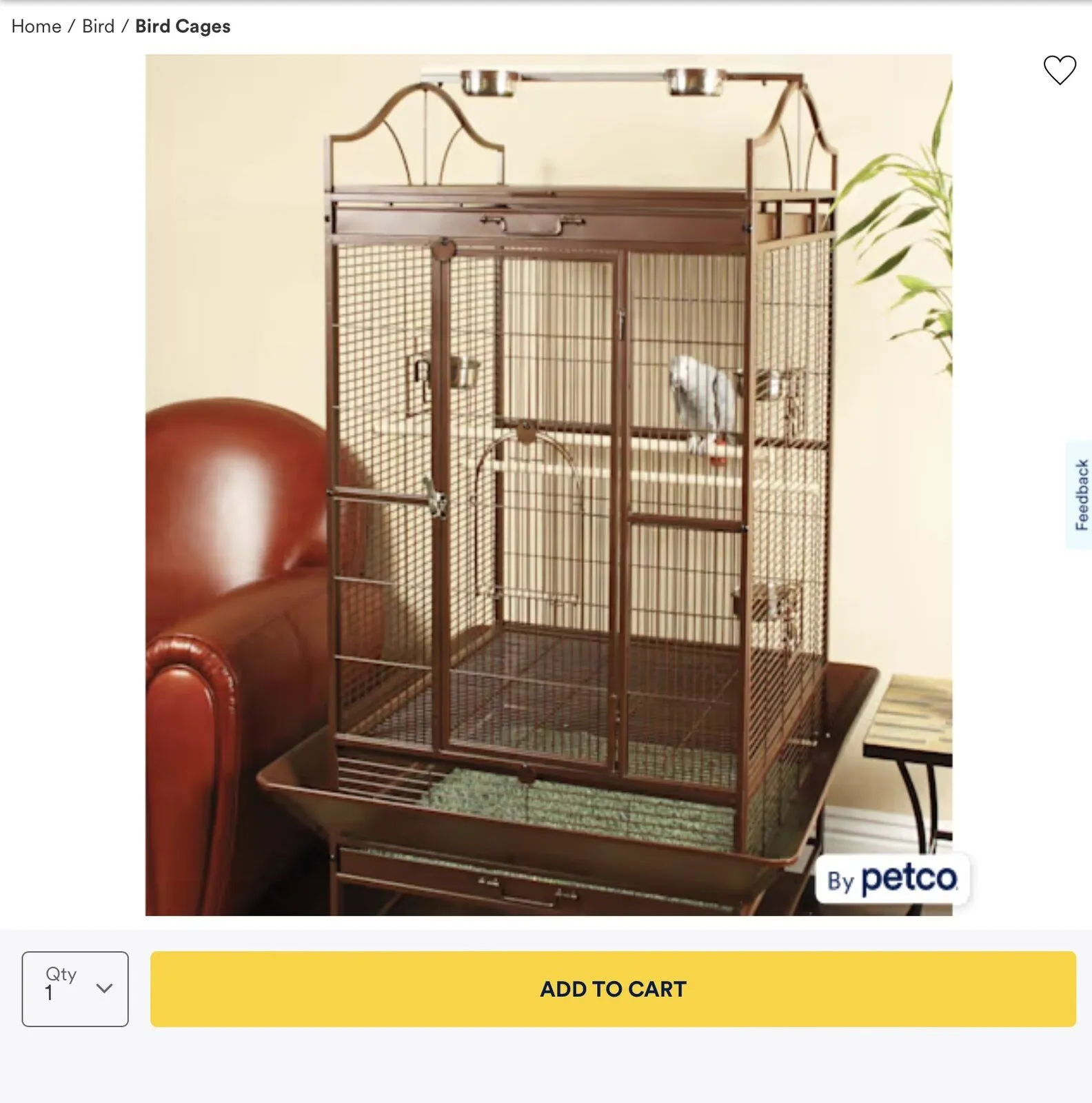 I have a brand new You & Me bird cage for sale. I purchased this while moving to a new house. Unfortunately I had to back out of the deal and the new house I eventually purchased has a living room which is too small for this cage.