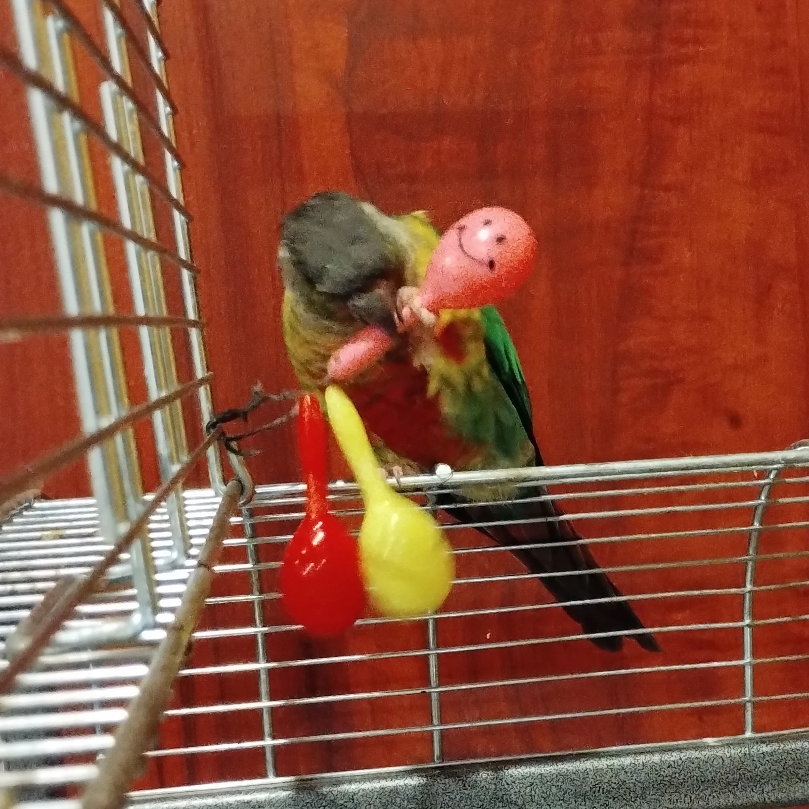 Oh yeah, he gets pretty violent! But that may be because his ball is inside his cage and he only kicks it around when I've had to lock him up for some reason, then he takes out his temper on that ball!!You mean - Lovejoy has a similar ball and plays in the same way?