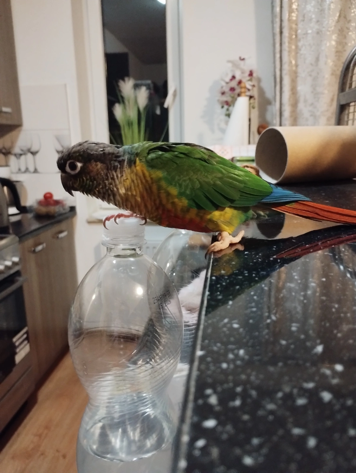 In the meantime Zenek found a new hobby just after his first leaving the cage in the new place - he decided to bite the bottles